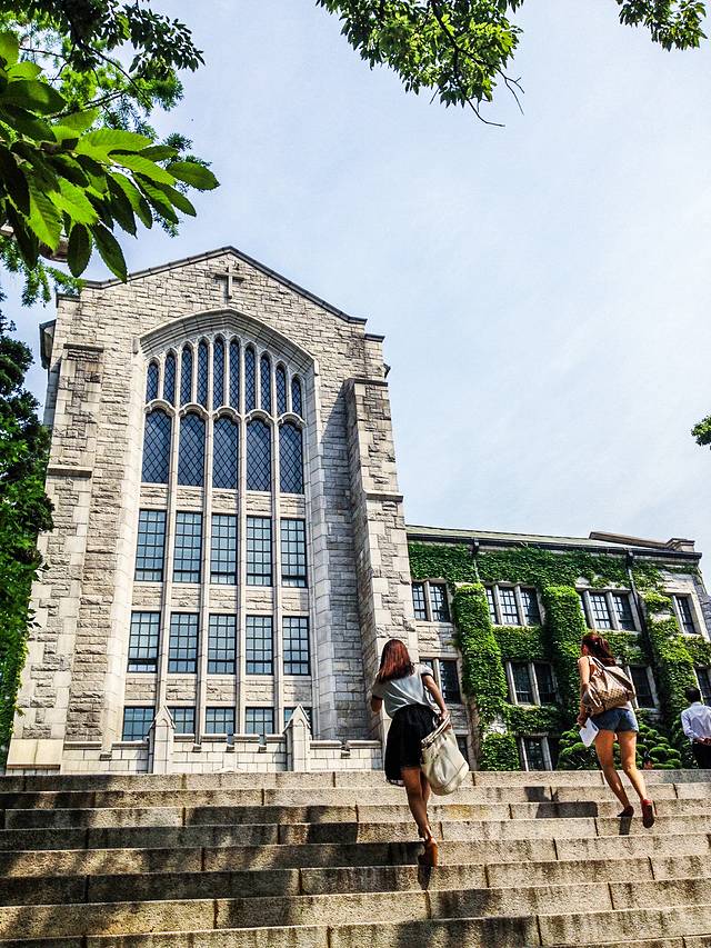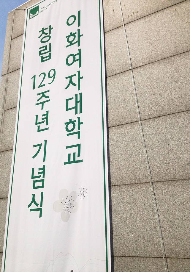 梨大正门,梨花墙正对面~~一大波精心化妆后的美腻妹纸涌入校园(此时,9:40)~~