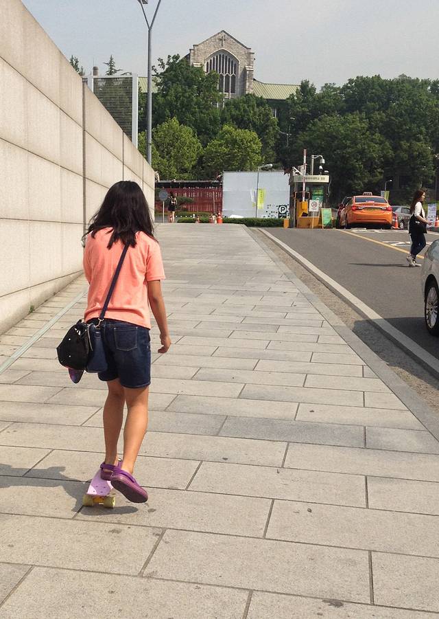 踩滑板上学~~同鞋你要不要介么拉轰~~