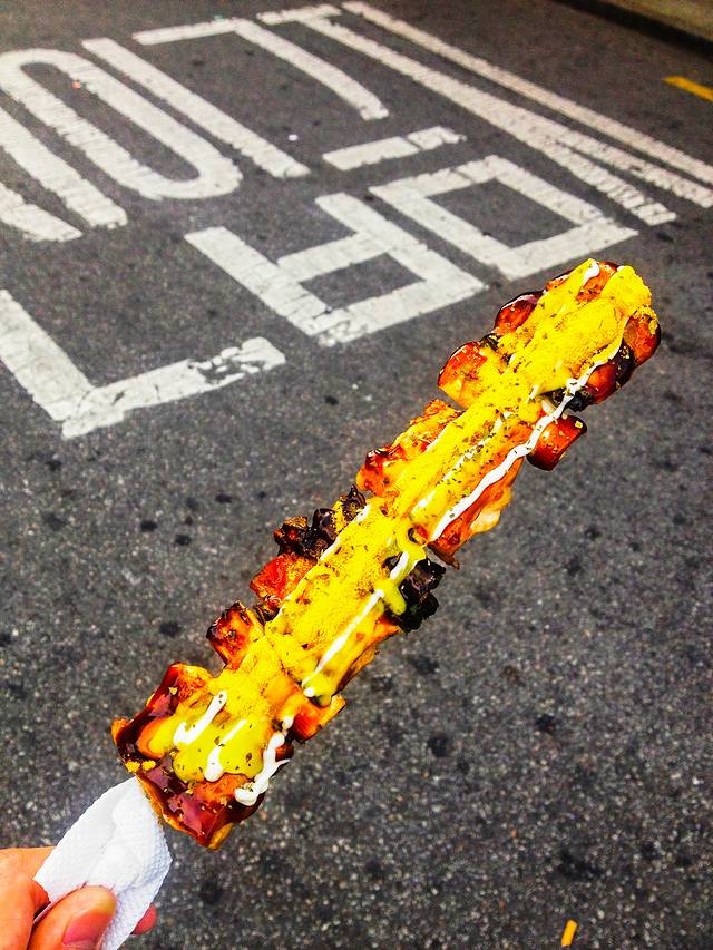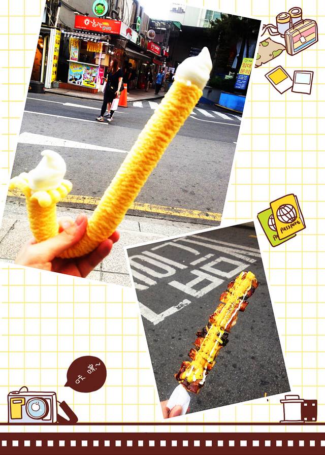 东大门附近的烤肉串,肉块与卷葱交错~~3000W,口感一般。但有肉总能甜蜜。