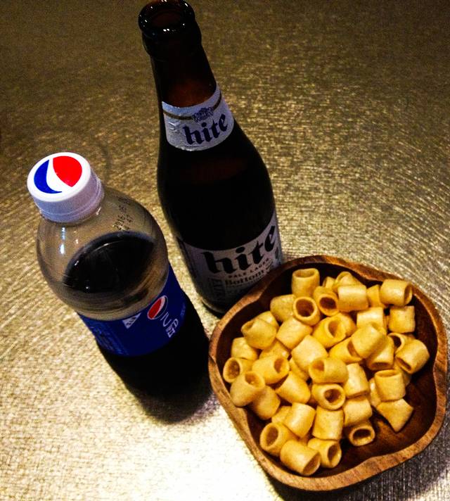 18000W一份炸鸡,辣味,全是翅膀和翅根,皮脆,肉嫩,又香,量还大!配着清口的萝卜,就着冰爽的韩国国产啤酒。哇咔咔,这等享受,乐哉,乐哉!