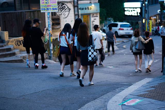 菇凉——晚上的弘大周边无疑是首尔美女密集度最高的点了!!没有之一!!