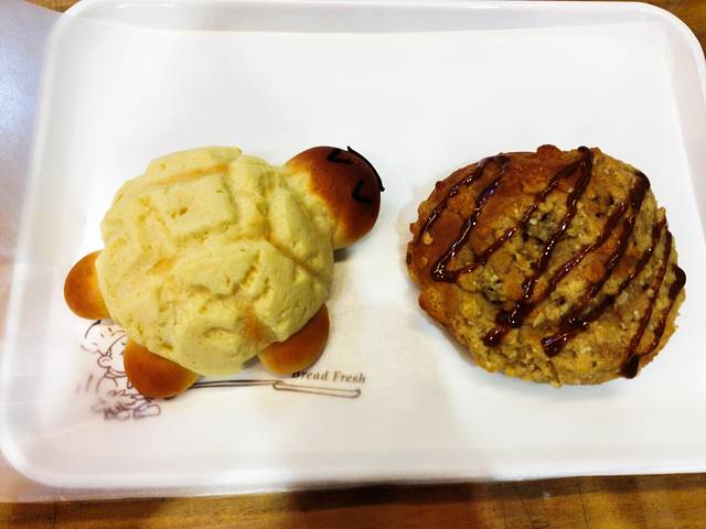 沿街某私人面包店,装饰摆设精致明亮,一进屋,诱人的香气扑面袭来,强烈的刺激着蠢蠢欲动的味蕾……勉强维持风度 买了2个面包当早餐~~