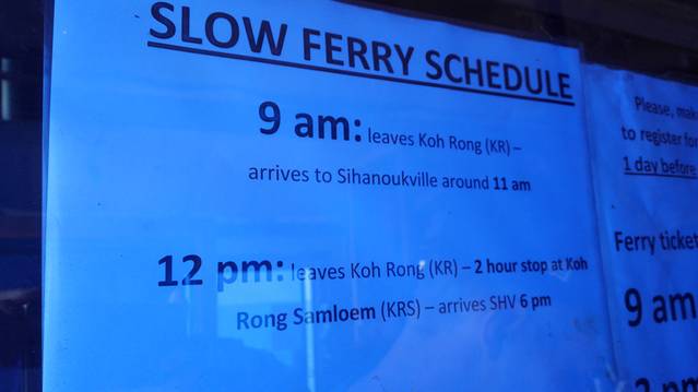 另一班中午12点,中途经过高龙撒冷岛两个码头,各停船1个小时,下午6点到达西哈努克。单程5美元。