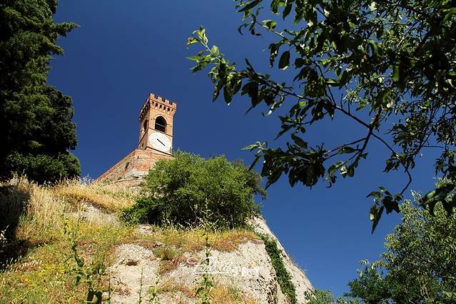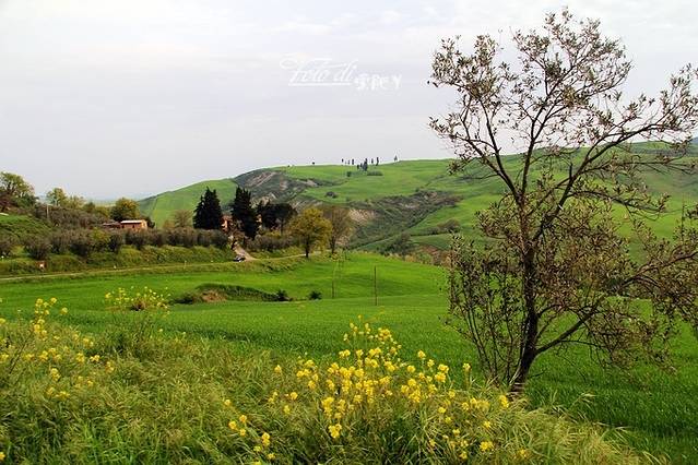 几十公里的比萨外毗邻大海的波涛, 沃泰拉周围没有碧蓝的海水,却有一望无际的大地的波涛。 这里的丘陵舒缓起伏连绵不绝, 而有着数千年历史的沃泰拉,就在上图正中那个山顶上。