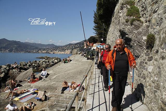 意大利的海因为山海相交, 所以徒步也是海边最流行的活动之一。经常是看到这边有人一身泳装躺在大石头上无所事事,那边有人全套户外装备沿着山路暴走不停,那种对比很有趣。