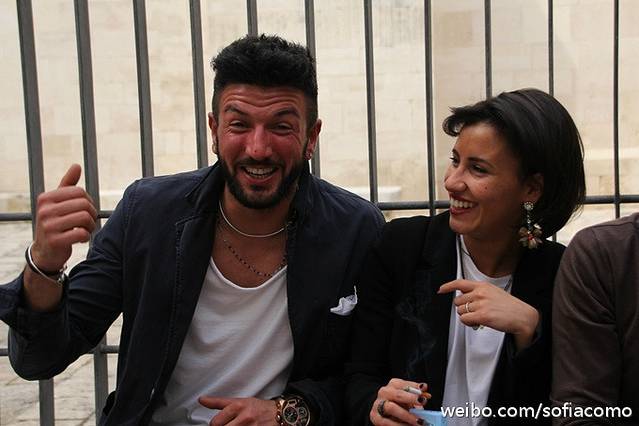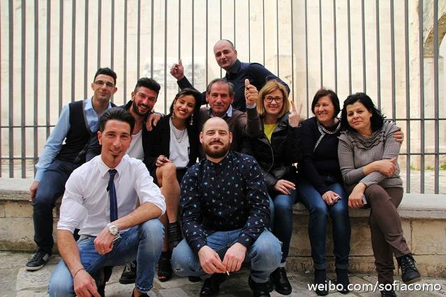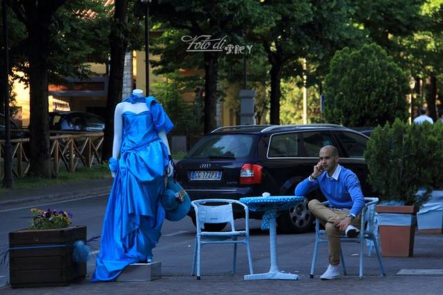 刚走没几步呢,就被人叫住了, “过来给我们拍张照片嘛”,扭头一看,哇塞,这么一大群!他们本是在一个小酒吧门口聊天的,放下酒杯火速在旁边的小教堂门口摆出了造型。先拍了一张一横排的,还不过瘾,又拍了这张,模仿电视里的广告齐声大叫“ITALIA UNO!"