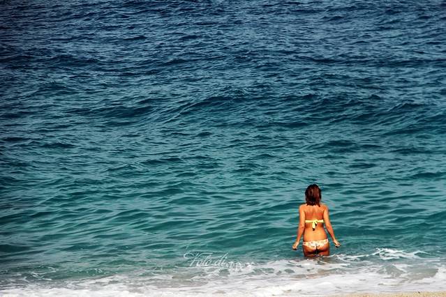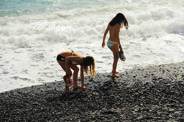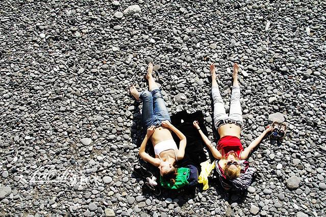 我家二妹九重春色就说,三年前她在这里捡过石头。我拍不到她,拍俩捡石头的比基尼女孩吧!