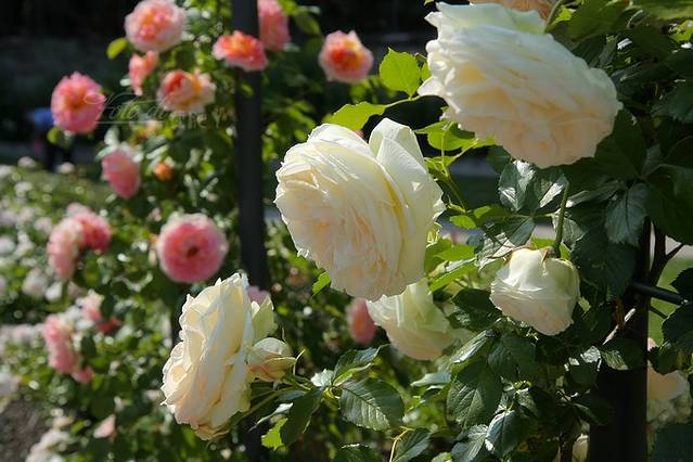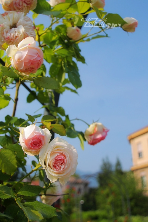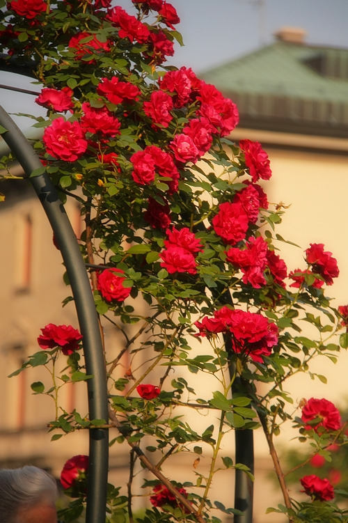 那些花架上有很多种不同品种的藤本月季。 是的,是月季啦,每次我这么写都有人跟我说这是藤本玫瑰啊,是蔷薇啊,上次请教过园艺专家了,这就是藤本月季。