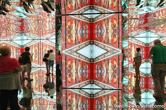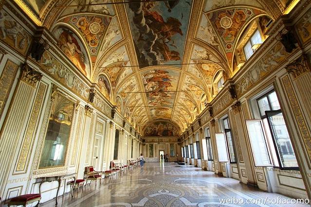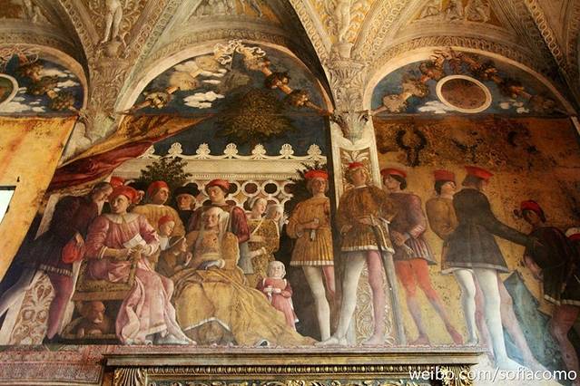 公爵府里的镜厅,华丽风范堪比凡尔赛。当地朋友指给我们看墙上一幅神奇的壁画,一个女人伸出手指指向观众,当你从左到右绕着她走动,无论在任何角度,你都感觉她的手指始终指着你。这就是透视的秘密,古代艺术家们已经将它玩得登峰造极。