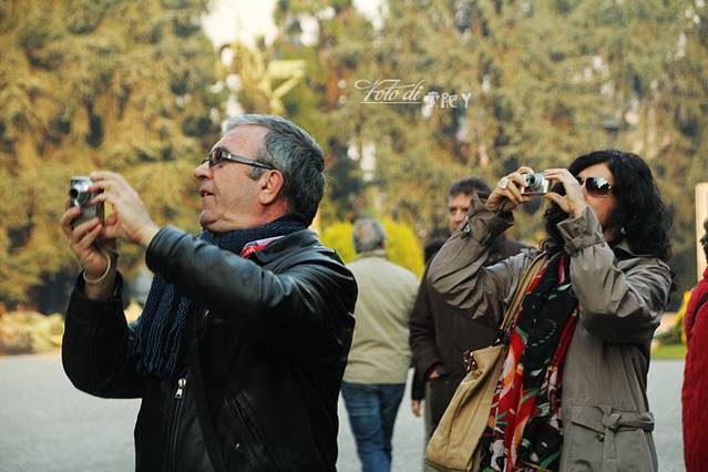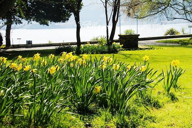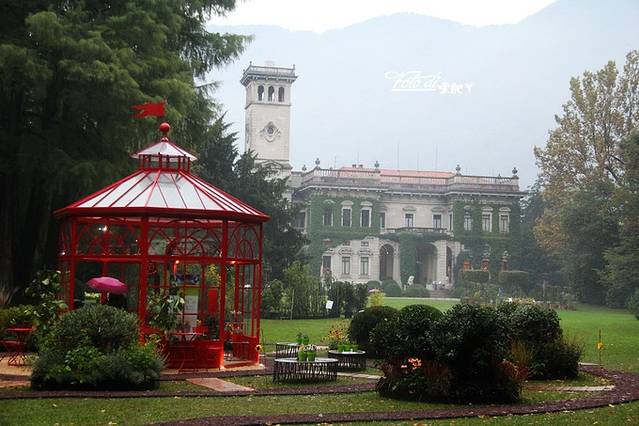 小岛上建筑不多,除了一处宫殿一处教堂,基本就是个大花园。 看过别人拍的不同的季节里的照片:长长的台阶上空架着紫藤的长廊, 文艺复兴式的宫殿下攀援玫瑰组成的漫长的花墙, 英式花园的草坪上大片浓烈的杜鹃......不过这个迟来的春天刚开了头,这些都看不到, 此时,花园的主角是茶花。