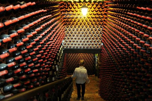 戛布里艾拉夫人吩咐工作人员到酒窖里给咱们取几种好酒来午饭时享用。 我们跟着进了酒窖,我的天,这满天满地满眼的酒啊!!!!!!!!!!!还好我们都没有密集恐惧症哈。