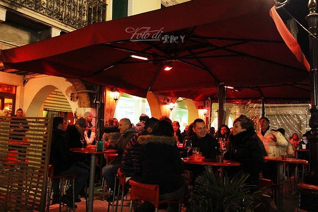 从河边拐到大街上,想找个地方吃饭。黄昏时熙熙攘攘的街道此刻空了下来,人都坐进了街边的酒吧里。大街上吧很多,提供酒水和简单的食物,正规的饭店却很少。