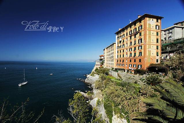 但这些地方都不是利古里亚海边我的最爱, 在这段山海交错的海岸线上, 有两个地方让我去过之后一直念念不忘, 一个是与五渔村一起被列入世界文化遗产的韦内雷港(PORTOVENERE),传说中拜伦游泳横渡海湾的地方,还有一个,就是今天我要说的卡莫利(CAMOGLI)了。