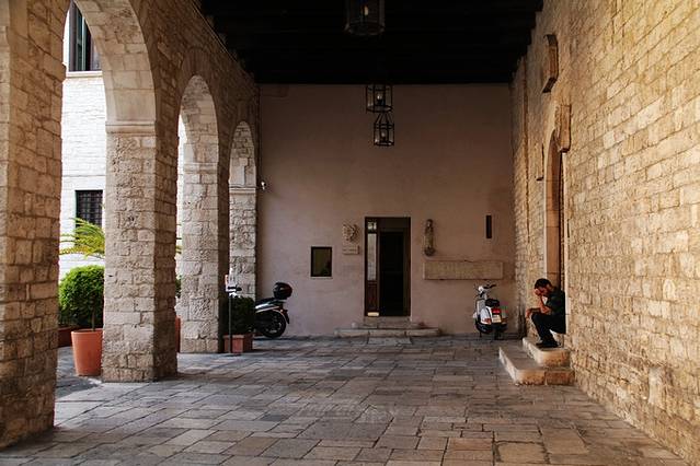 被放弃的第一程车票,价值一欧元。钱虽少,但好好一张票扔了总觉得可惜。碰巧那天下午天气不好,计划中的乘船探秘海上溶洞、骑车闲逛斗笠屋海岸之类变得不那么可行,干脆,就拿上这一欧元的车票去看看那座叫做莫诺波利的小城吧。