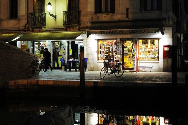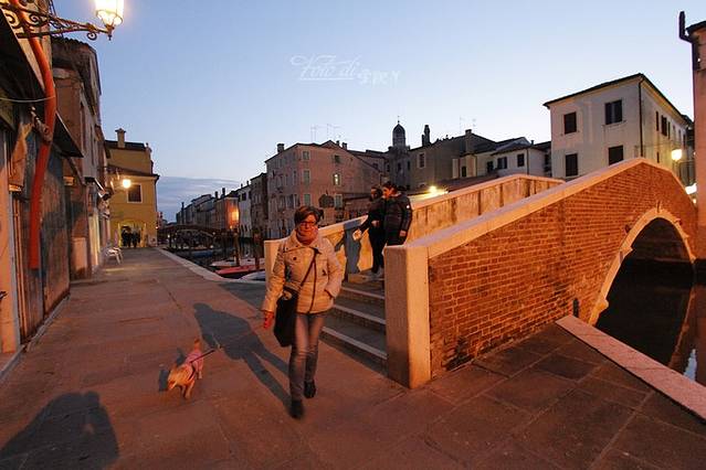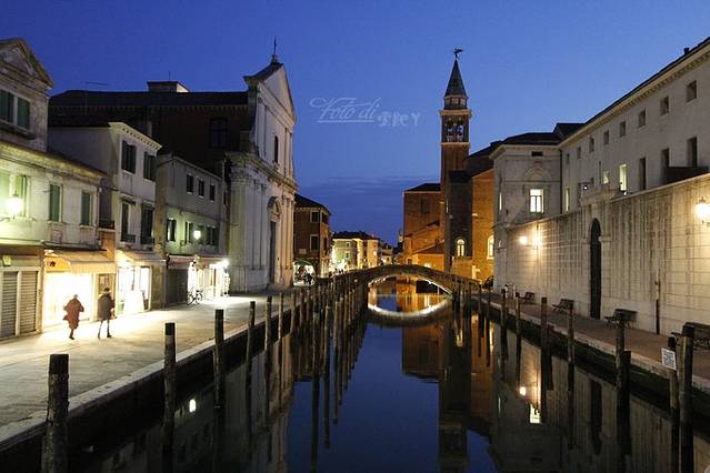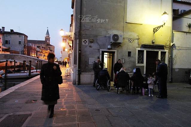 与人民大街平行的,就是基奥贾最主要的一条运河,或者说,是老城区唯一的运河。基奥贾的白天就很安静,此时这静随着夜色的变浓也在一点一点变浓。河边只有些稀稀朗朗的人影,都是当地居民,不见游客。