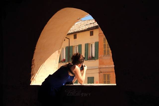这就是据说被莎翁写进了《仲夏夜之梦》的城门, 维多利亚门(PORTA VITTORIA)。 小城的城墙被护城河环绕着,只有两个这样的门进出。