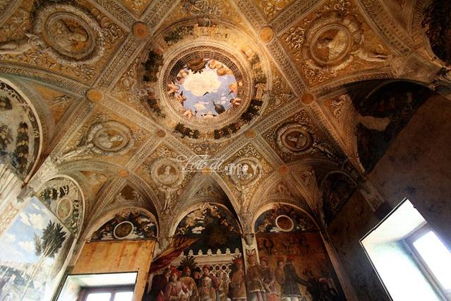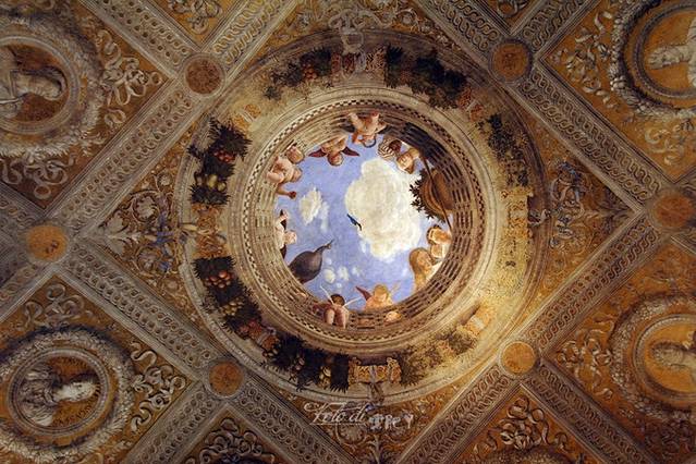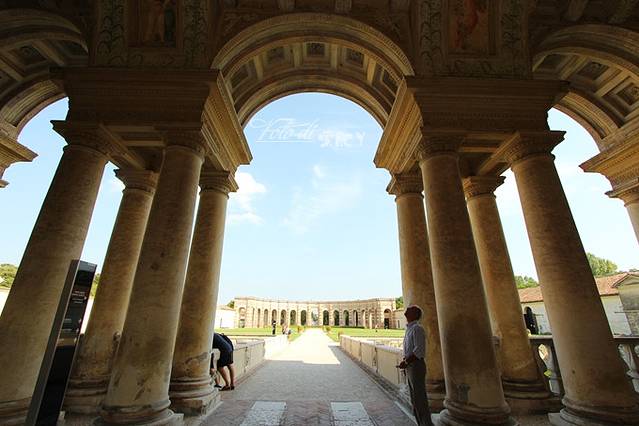 如果说粗通欧洲美术史的我,对婚礼厅里ANDREA MANTEGNA的作品还算倾慕已久的话,我从未听说的PALAZZO TE(泰宫)的华丽宏大就让我猝不及防。这座宫殿是拉斐尔的助手GIULIO ROMANO设计给GONGAZA家族的夏宫,外观上优雅大气,内饰却华丽得吓人。