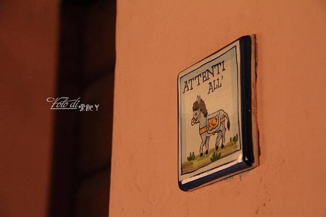 民房门边有个这个标记UNIVERSITA' DEI CANE DA TARTUFO (松露猎狗大学)。大门是关着的,门外停着车,应该有人在,我于是上前按门铃。