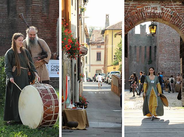 我们去的那个周末,SONCINO的城堡里正在搞中世纪节。夏末初秋的时候,意大利各地这种小节日特别多,估摸是趁着天还暖和大家抓紧时间好好乐乐的意思。这类节日基本上都是弘扬本地文化特色的,比如同一个周末,30公里外的著名琴城克雷蒙纳的斯特拉迪瓦里小提琴节正办得如火如荼, 小镇子没那么多高大上的家底,但咱不是有个中世纪城堡嘛,那就搞个中世纪节呗!