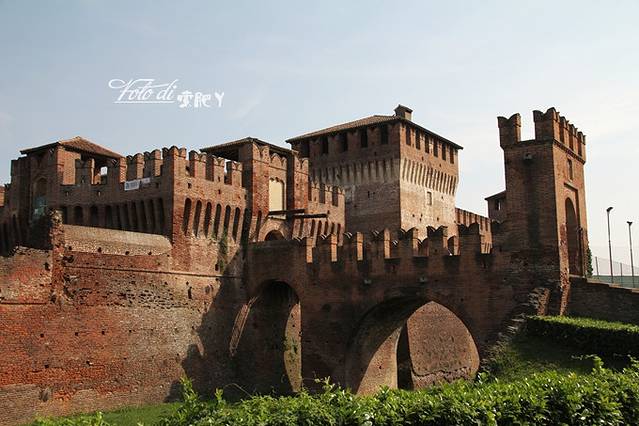 让SONCINO与其他小村镇有点不同的是位于镇子西南角这个颇为壮观的城堡。城堡始建于公元十世纪,在1426年对威尼斯人的战争中得到了扩建和加固,到1473年基本建成现在的样子,由三个方形塔楼和一个圆形塔楼固守四角,外部有壕沟,有桥,戒备森严。 因为古朴雄浑的造型,这城堡也曾作为一些电影的拍摄背景。