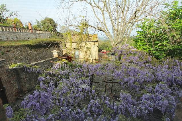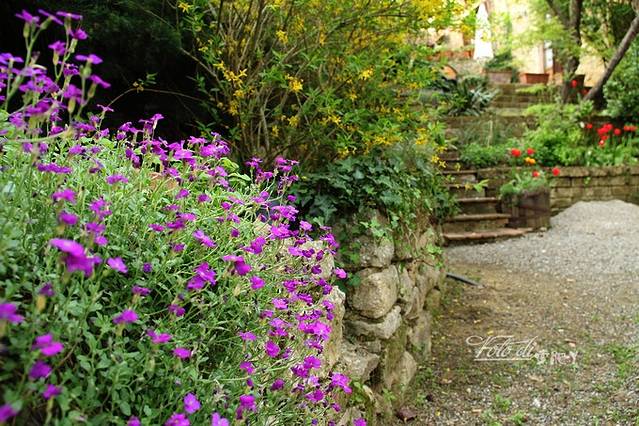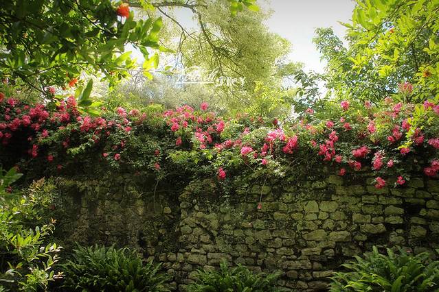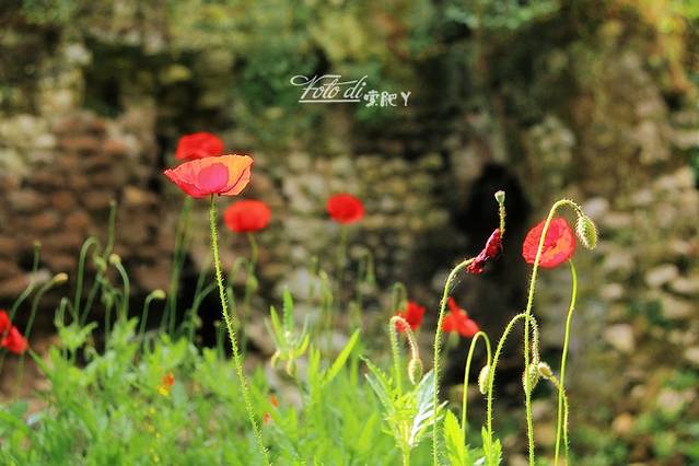 此行之前,我已经把BBC那部美轮美奂的纪录片中关于NINFA花园的片段看了很多次了。印象中,这花园应该是有几处花环水绕的废墟。 身临其境才知道,原来此园中有无数处废墟,什么教堂、城堡、市政厅、水渠、磨坊、城墙.......一个曾经繁荣过的中世纪小城大部分建筑都在这里,虽然已经坍塌颓败;而每一处废墟无不是绿叶披覆、藤蔓摇曳、鲜花簇拥。 那些攀爬上高高的碉楼的蔷薇,那些覆盖了河边要塞的残墙的紫藤,那些盛放在古朴的石桥边的鸢尾和菖蒲,一切都曾煞费苦心经营,一切却又宛然天成全然不见匠心的痕迹。