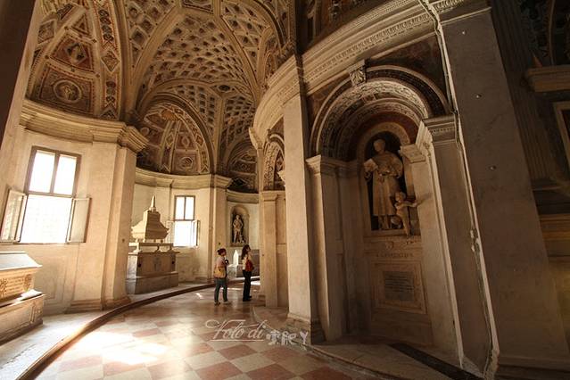 这是圣安德烈教堂(BASILICA DI SANT'ANDREA),建筑的华丽宏伟就不说了,让它拥有至尊地位的是这里收藏着耶稣的圣血。圣血藏下地宫一个上了十二把锁的柜子里,这十二把钥匙分别由四个重要人物掌管,只在每年复活节前的周五,柜子才被打开,圣血被拿出来朝拜。不过当那天地宫里只有我们六位不同国籍的女子和管理人员时,那位可爱的大叔告诉了我们一个秘密(同行的德国女孩为此表示“我真是爱死意大利大叔们了,如此善解人意”),至于是什么,我不能告诉你,我们都发誓我们什么不曾听到过不曾看到过