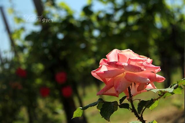 比孔雀更吸引我眼球的,是每排葡萄前的这些玫瑰, 明艳的红,轻快的绿,这样的搭配恐怕绝不仅仅是为了美观吧?