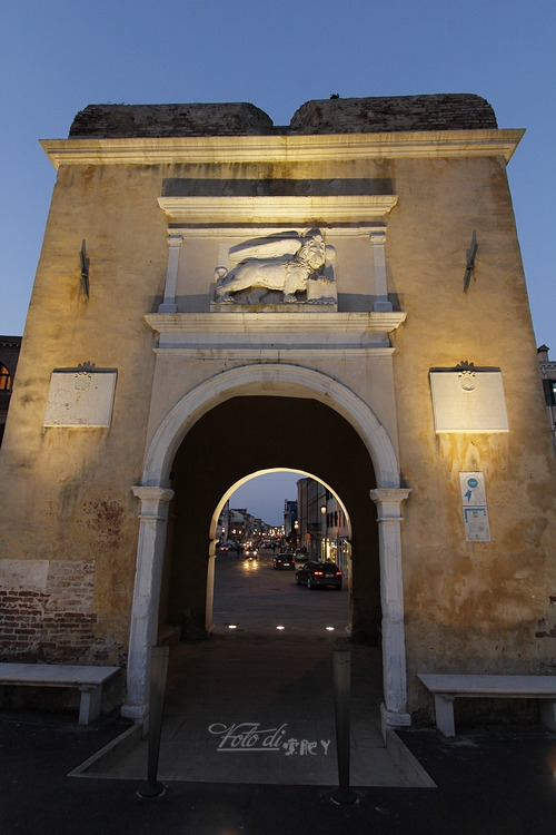 这是基奥贾的城门。上面雕刻着带翅膀的狮子,那是基奥贾历史上被威尼斯征服的标记。 当年的威尼斯雄霸一方,就是距离它两三百公里外的城市,如贝尔加莫、博洛尼亚、锡耶纳等,也能看到这样的飞狮形象。