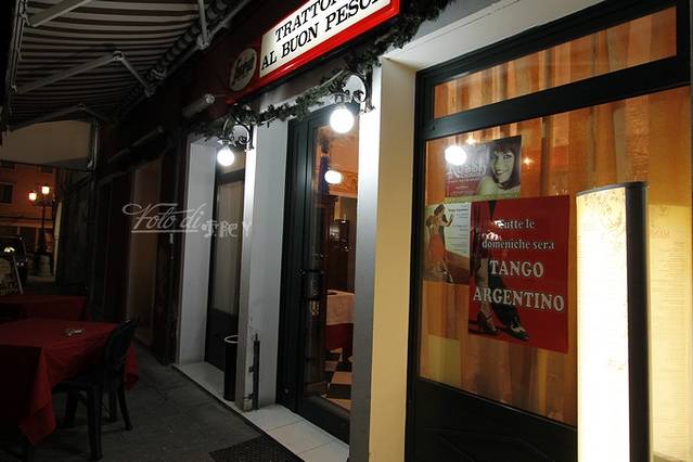 在一条与大街垂直的小巷里发现了这家饭店,名字叫“RISTORANTE AL BUON PESCE"(好鱼餐厅)。停了下来,因为看到门口的招贴画上写着,这里每个周日都有阿根廷探戈表演。可惜,我到的时候是周五。