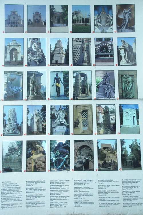 米兰纪念公墓开放于1866年,一百多年来,公墓中慢慢积攒了各种古典和现代风格的精美雕塑,包括希腊神庙、方尖碑和图拉真神柱的复制品。由于米兰是意大利工业最发达的地区,许多富裕的实业家家庭会邀请著名的建筑师和雕塑家设计建造墓园,让它以艺术性的墓葬著称于意大利。