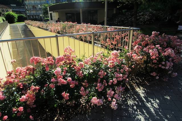 这就是地下停车场的入口, 一年有三个季节,它都会被这样密密匝匝的蔷薇花儿包围着。