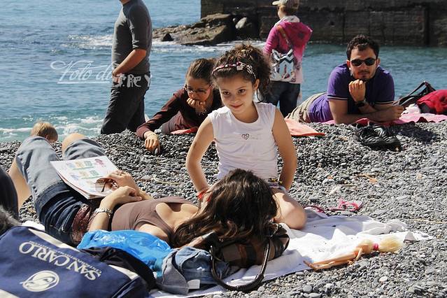 周末的海滩上人不少,大多数是从热那亚等周边大城市赶来的。石头滩上铺个毯子,一呆就是一整天。