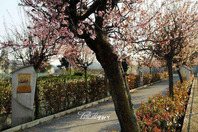 第一次感到春天的来临是3月底在博洛尼亚郊外,旅馆对面有一个果园,满枝密密匝匝的花朵都快挤不下了。我对蔷薇科的各种木本花卉诸如桃李梨杏之类总有点识别障碍,纵然相关科普知识看过N多变,也只能确认这不是梅花、不是桃花、不是樱花, 只好求助于万能的微博,得到答案:南意的大杏子的花也!! 原来是杏花, 听到这个词,总想到“杏花,春雨,江南”, 是那般婉约缠绵朦胧悠远的意境,怎么这杏花到了意大利就变成了这般热情奔放的德行。