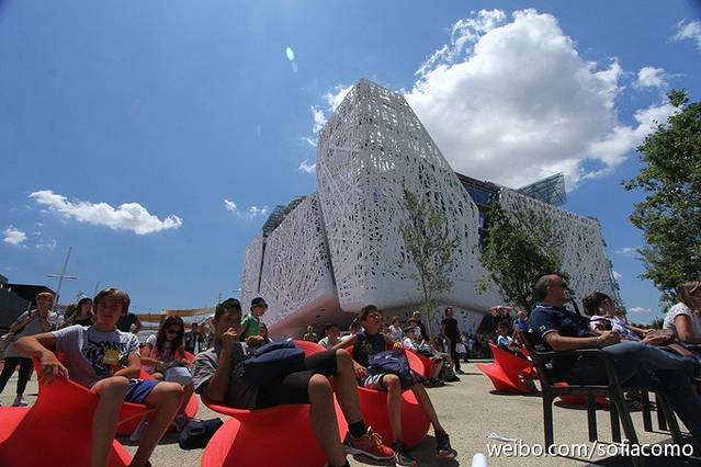 作为本届世博的主办国, 意大利国家馆的规模当然是最大的, 外观也还算新颖美观,不过在宛如建筑博物馆的世博园里也不算特别突出。真正让人惊叹的是内在。