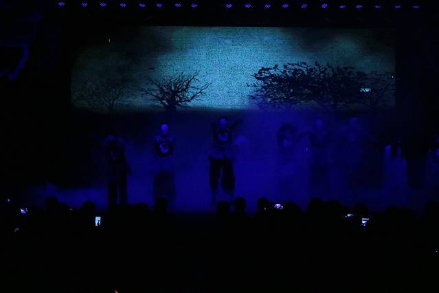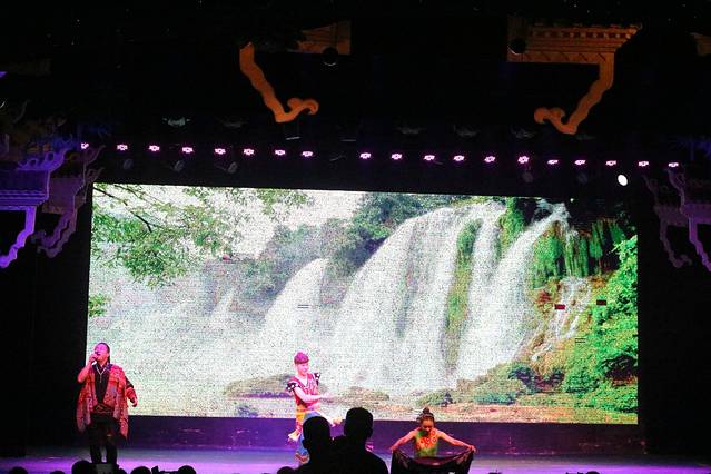 晚上8点开始的篝火晚会,地点在沱田车场旁边的梦幻沱江,离我们住的客栈只有一条小巷2分钟的路程,门票是在客栈的前台买的,价格公道,一个人60元。篝火晚会分外场和内场,内场就是看一些歌舞表演,名俗文化展示!最值得一提当然是湘西赶尸表演,晚会之中的精华,非常震撼,特别有身临其境之感。不足的就是晚会后面有个卖字画的环节,都是商家赚钱的套路。