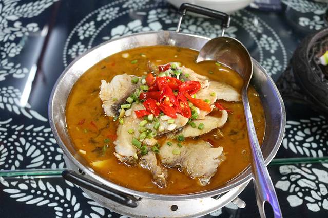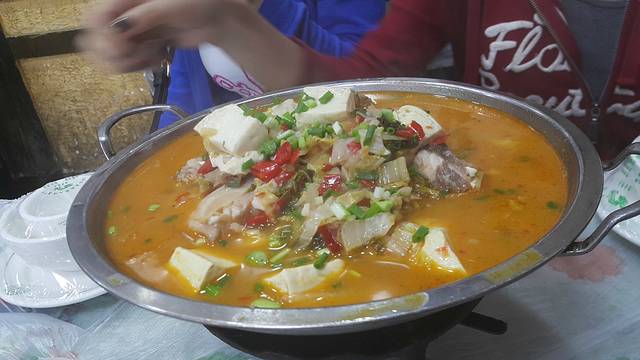 呼呼...终于坐下来吃饭啦 传说中的酸汤鱼 用的是草鱼 鱼肉有点渣