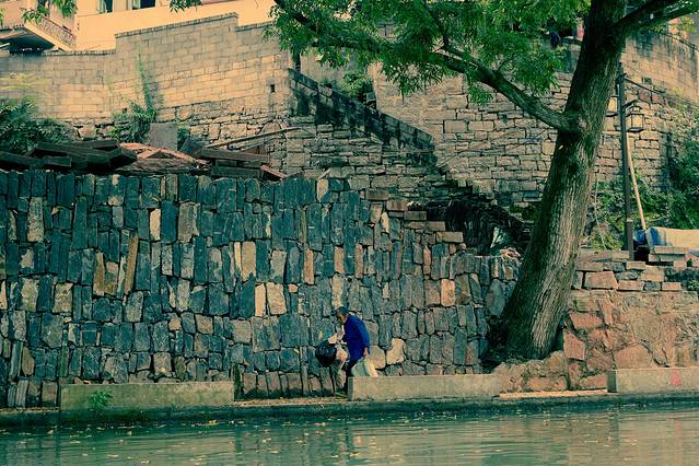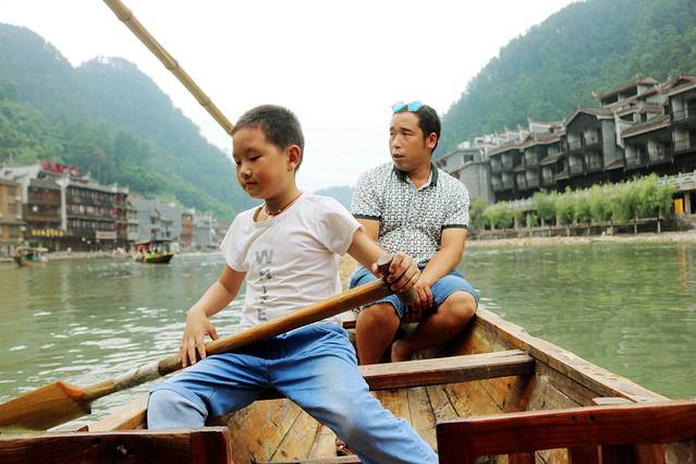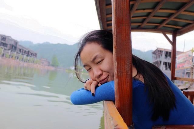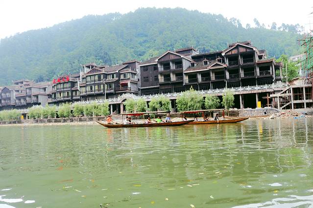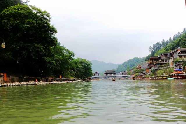 走累了准备去沱江泛舟,找了个旁边趴活的老奶奶带我们去谈好价钱15元一个人来回,从古城走到沱江泛舟的登船处起码要走20分钟,到了终点师傅会把你放到一家酒坊让你品尝他家的酒,有种叫桃花酒的味道不错,经常喝酒的朋友可以买,价格很公道。沱江泛舟很有诗意,昨夜里还下了雨,江水微凉但是很清。