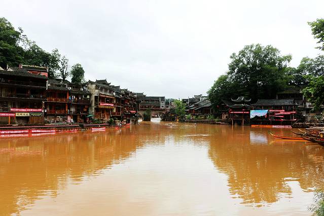 第二天我们睡到自然醒,一觉醒来已经是早上9点半,洗漱完毕之后,在路边买了几个红薯和饼。又继续在古城浪。由于昨晚下了一夜的暴雨,沱江的水已经浑浊不堪了,没有看龙舟的人们,古城又恢复了一点宁静。小长假避免不了人多,沈先生笔下的宁静的边陲小镇是没机会感受了,那就慢慢的享受现在的凤凰吧。