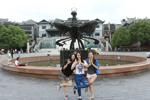 走着走着就到了凤凰广场,各种自嗨合照 !凤凰古城的厕所特别少,好多商铺弄私人厕所,收费一元一次,于是我们继续暴走找公厕,发现公厕在售票处不远的一个隐蔽的院子里头,微醺。