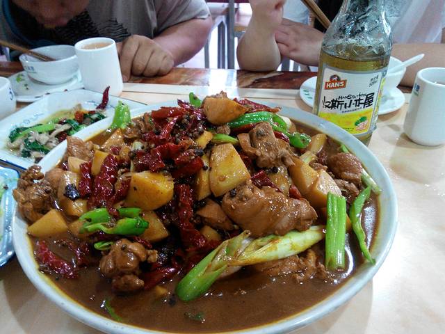 新疆大盘鸡,小份58元一盘。这小份也够大的了。