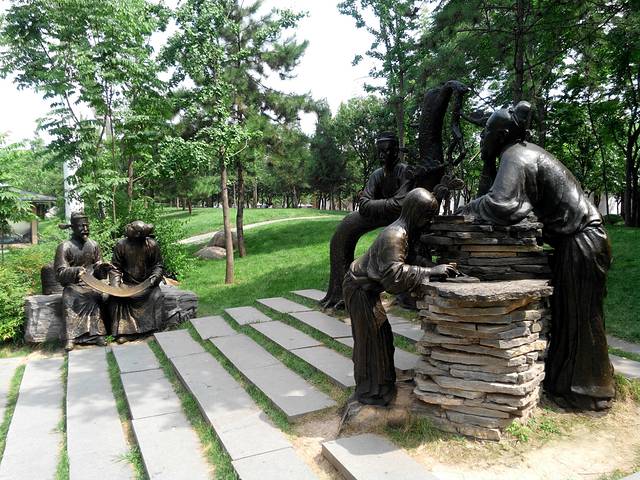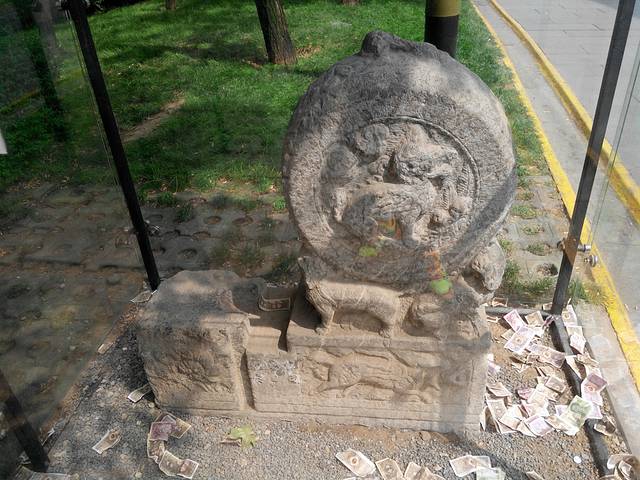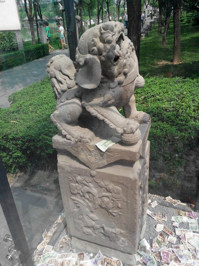 曲江池周边遍地都是石像,拴马桩,门墩等文物。