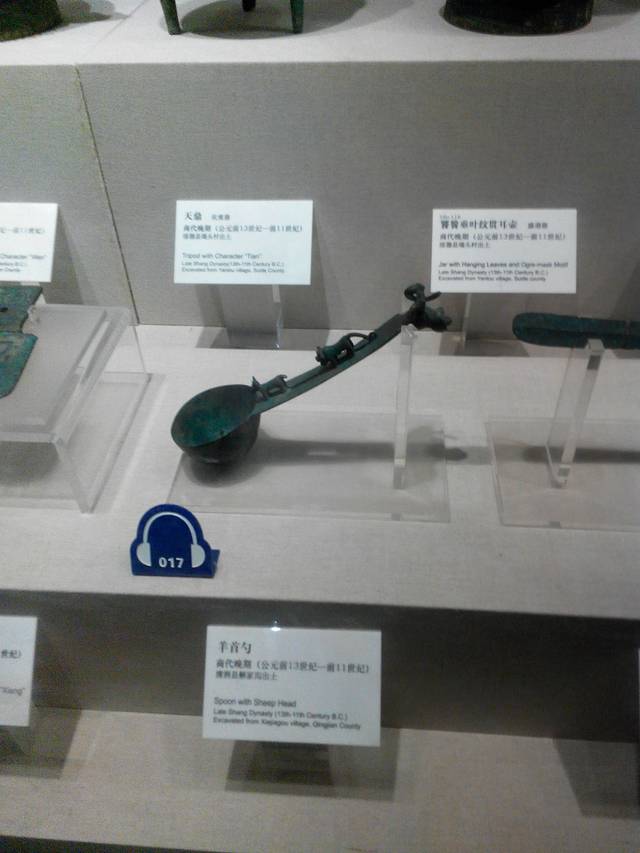 羊首勺为商代晚期的文物,1977年出土于陕西省清涧县解家沟商代墓葬。通高28.5厘米,勺径9.5厘米。