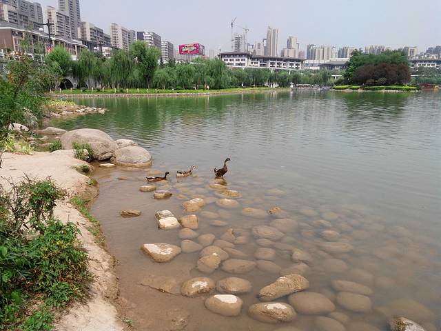 全池水面约0.7平方公里,池形曲折,南北长,东西窄,因地势开凿,极为自然。原来曲江两岸,宫殿连绵,楼阁起伏,垂柳如云,花色人影,景色绮丽,是唐长安城著名的游览胜地。 盛唐时期,贵族仕女,车马侍从,樽壶酒浆,笙歌画船,悠游宴乐于曲江。新中的进土,在考场及第之后,也每每成群结伴,到曲江大摆筵席,饮酒作乐,所谓“曲江流饮”,被称为“长安八景”之一。