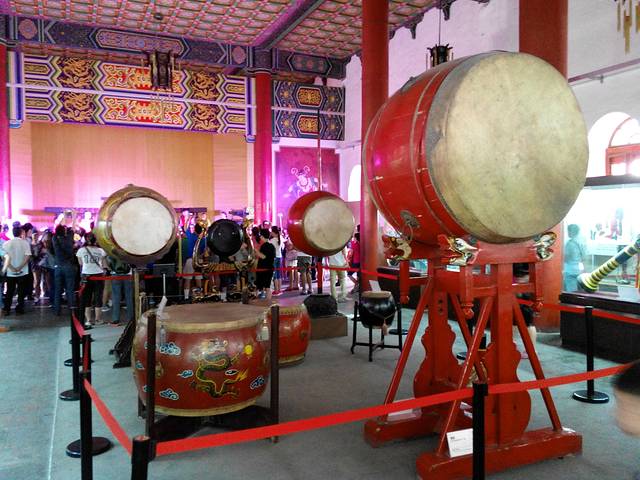 在鼓楼第三檐下,南北各悬匾额一块,南面为“文武盛地”,北匾为“声闻于天”。