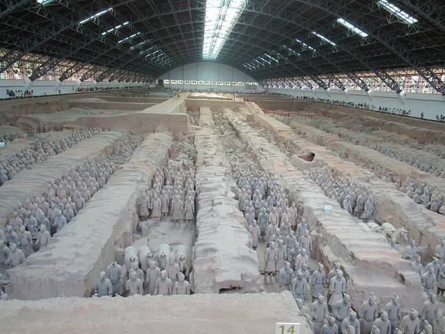秦兵马俑坑发现于1974年,秦始皇陵以东1.5公里处。1979年国庆节秦兵马俑博物馆隆重开放。吸引无数友人前来参观,先后已有200多位国家领导人参观访问。