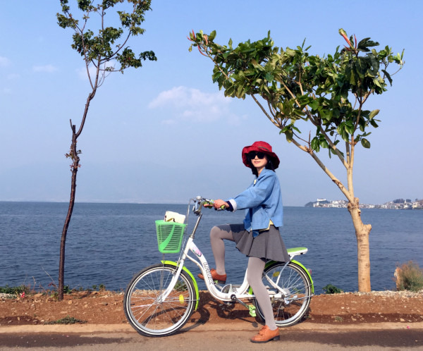 昨天在63号别院认识了北京来的Q姐,年龄50+,心态非常的年轻,爱摄影爱旅行,潇洒的人生不需要解释,约好了今天一起从双廊骑行到挖色,来回30公里,路况很好,天气比昨天也好一些了,租自行车好像是20块钱一天,旅行渐入佳境