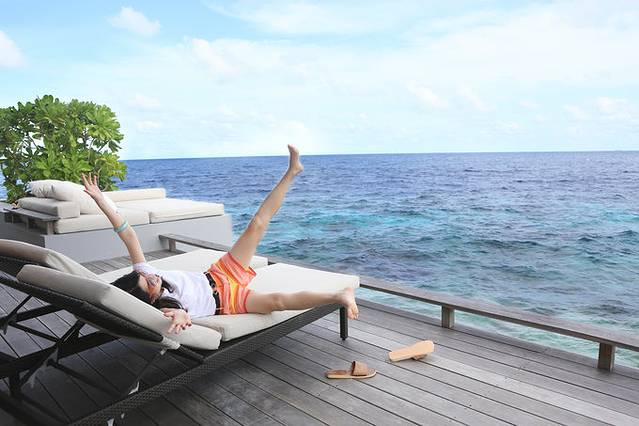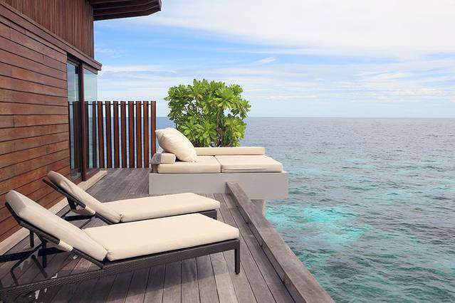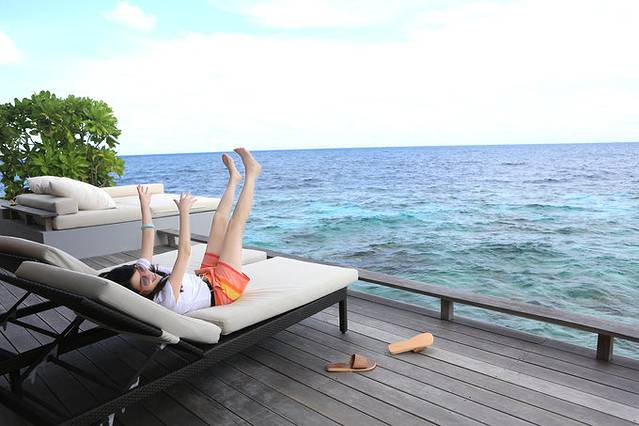 印度洋在51号水屋的宽阔露台前波澜不惊一览无遗。这是一个漫长的热带下午,赤道以南,太阳以西,且听风吟。