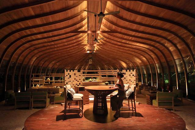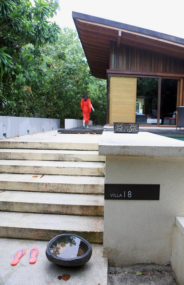 管家benny已经在等候我们了。一看到他,我就抢先回答:我-们-过-得-很-好-。他依旧用很低的声音笑,然后用慢动作带领我们走去spa中心。我问 他:你是在禅修吗?他回答:禅-修-?没-有-吧-。曲径通幽,在一个被美丽鲜花蚕食的隐秘游泳池后面,就是著名的哈达哈spa按摩房了。