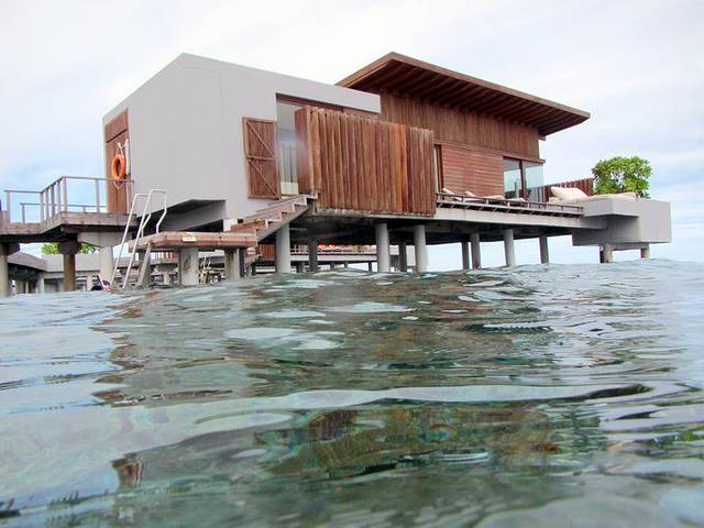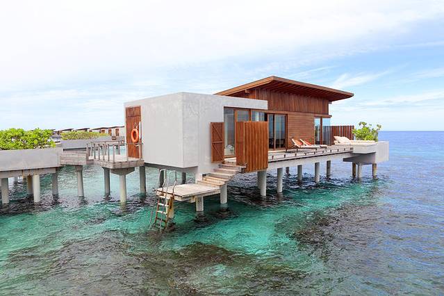 屋都是在陆上建造好后再安置到海上,所以这个岛屿也拥 有了最美好的水屋浮潜环境。人和自然的关系,人和人的关系,就是这样的吧。你先对它好,它就愿意将自己无私奉献给你。照片背景就是岛屿的水屋,你猜,哪一座将会是女巫的家呢?