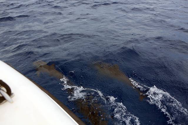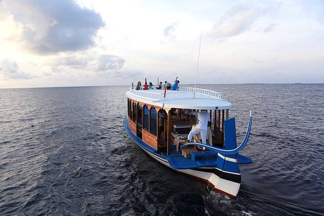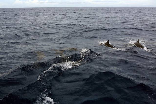 白色的酒店专属快艇小巧雅致,座位柔软可靠。小黑同学边送上冰毛巾和救生衣,边已敏捷发动马达,一个身材高大的小黑始终站立在快艇的右侧后方用身体来平衡飞速的颠簸船身,我们即刻从碧蓝海面上发射向远方。几分钟后,驾驶员小黑高声招呼快看快看,他也不说看什么,向着他指向的海面仔细看一会儿,突然整船爆发欢呼:是海豚!没错,我们多么神奇的一离开陆地就看 到了幸运的海豚。它们像孩子般嬉闹追逐在船的一侧,发出轻微的鸣叫,有几只还顽皮的起跳去了船头位置,仿佛好客的主人引领着天外来客快点去到它们的海洋仙境。